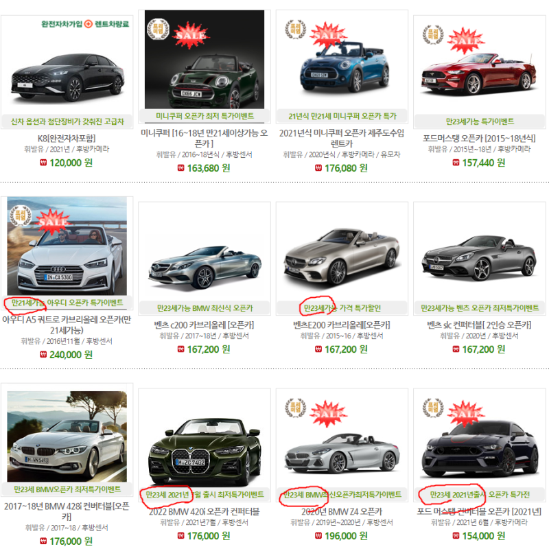 - 소형차, 경차 등은 하루 10,441원~14,727원 수준의 최저가도 찾아볼 수 있습니다.