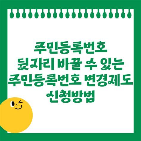 - 자세한 안내는 행정안전부, 주민등록번호변경위원회, 각 지자체 홈페이지에서 확인할 수 있습니다.