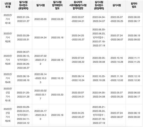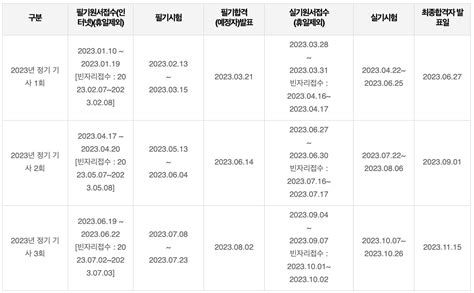 - 실기 시험은 각 회차별로 정해진 기간 내에 시행되며, 종목별로 세부 일정이 다를 수 있습니다.